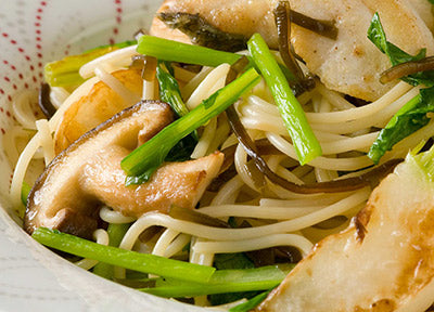 | [冷製パスタにも] | 茹でたてを洗わずそのままソースと絡めてください。冷製パスタの場合は30秒長く茹でた後、水で洗ってご使用ください。 |
